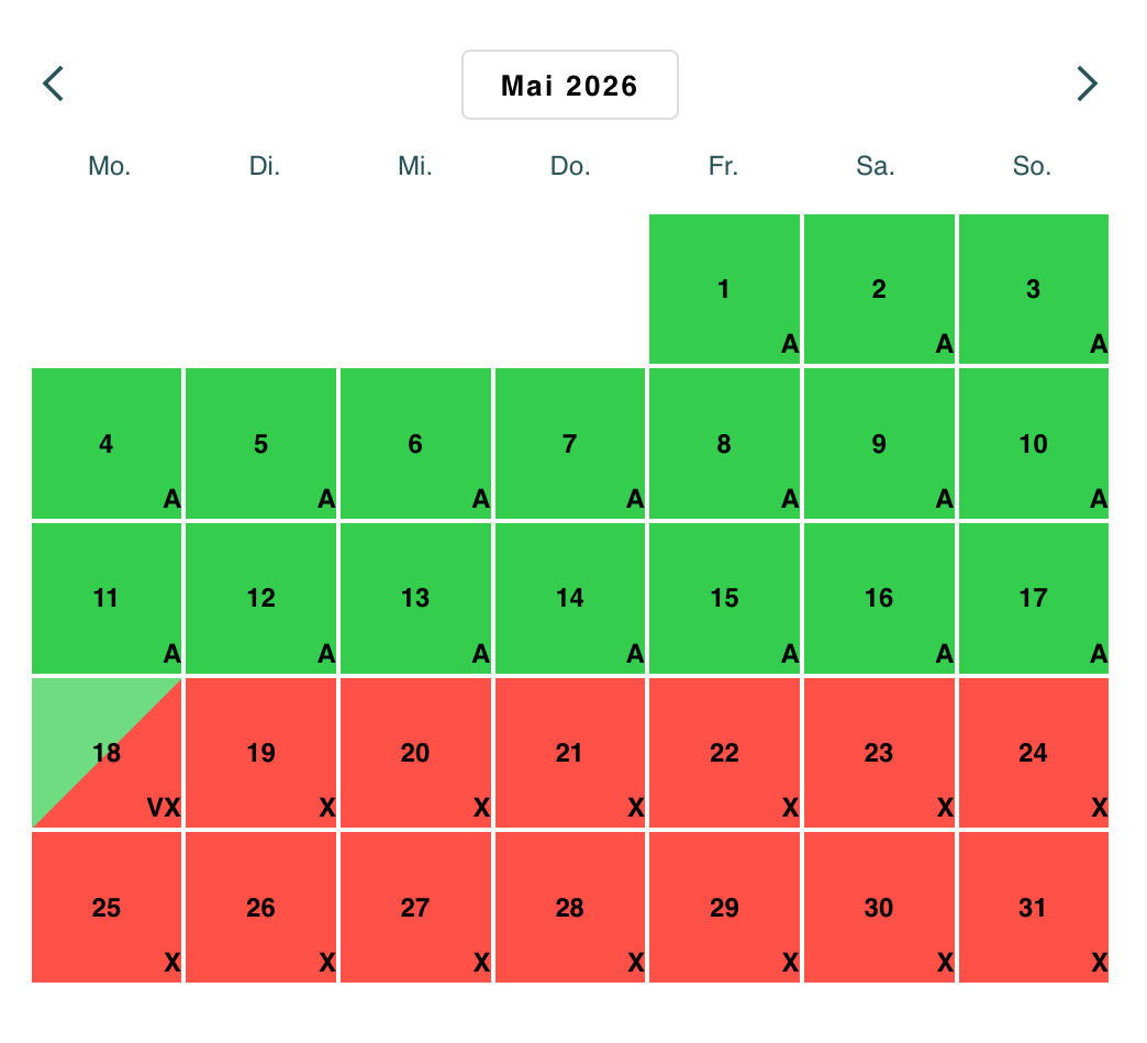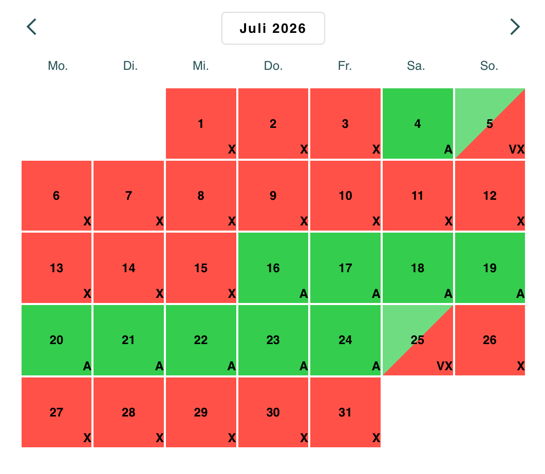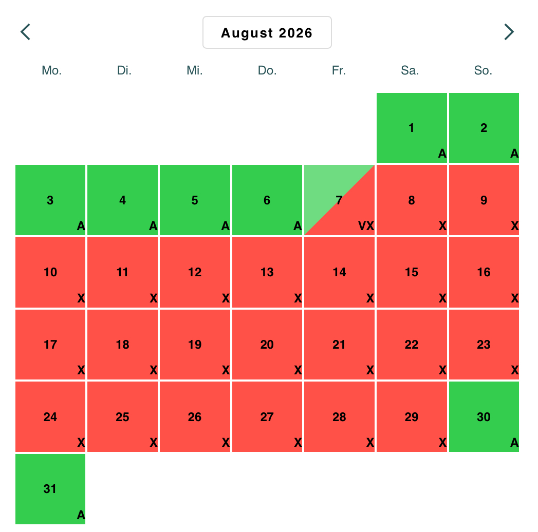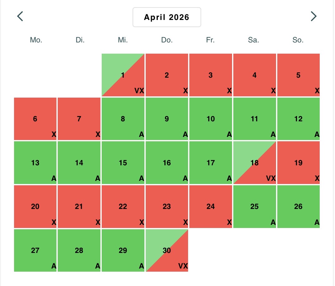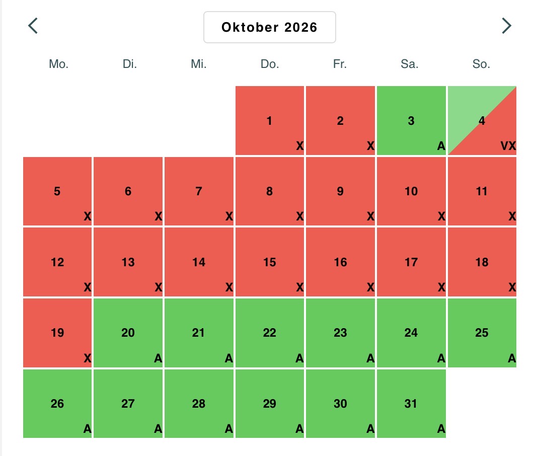 Abreisen am Mo und Di sind aus organisatorischen Gründen leider nur eingeschränkt und auf Nachfrage möglich. Bei einer Preisanfrage oder Reservierung klicken Sie bitte auf den nachfolgenden Link teilen Sie uns bitte die gewünschte Reisezeit und die Personenanzahl mi